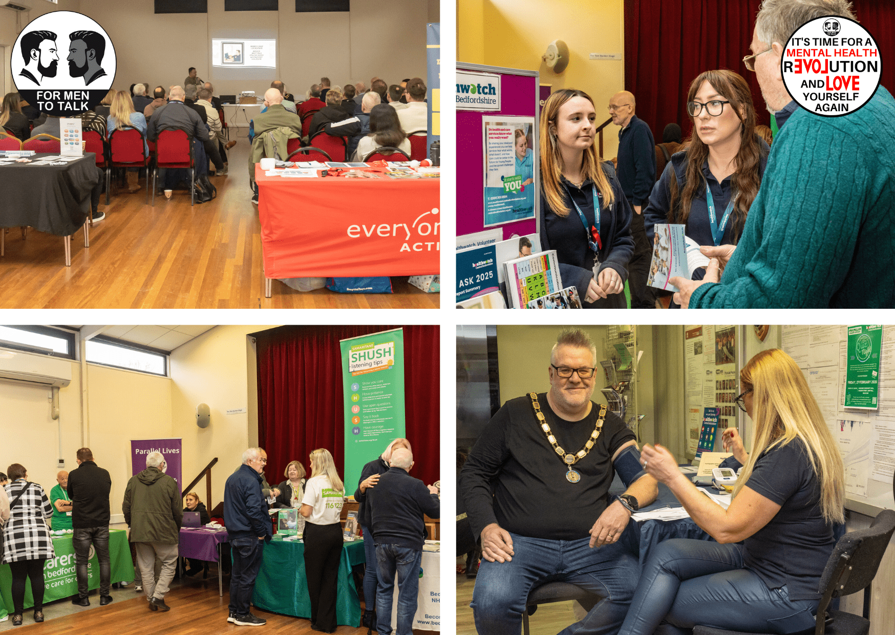 Hosted by Ampthill Town Councillor Stephen Addy, supported by Healthwatch Central Bedfordshire and ‘For Men To Talk’, the event took place at Parkside Hall. The atmosphere throughout the day was open, supportive and welcoming, with many men taking the opportunity to ask questions, share experiences and find out what help is available locally. A free lunch was also provided, giving people time to connect and continue conversations in an informal way.