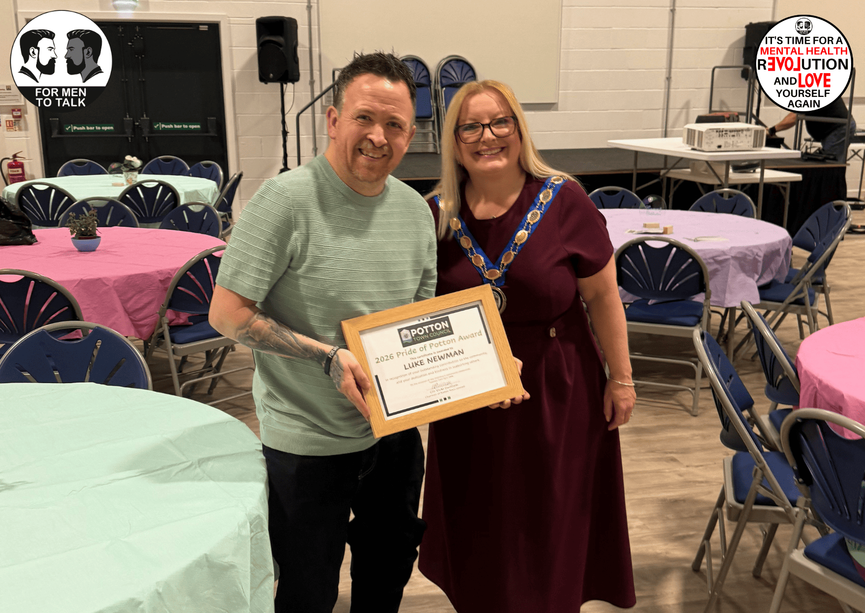 At the Potton Chairman’s Community Celebration, Luke Newman, CEO and founder of ‘For Men To Talk’, was awarded the very first Pride of Potton Award for 2026. The award was presented by Councillor and Chairman of Potton Town Council, Vicki Gwilliam, in recognition of Luke’s dedication to supporting others and his contribution to the local community.