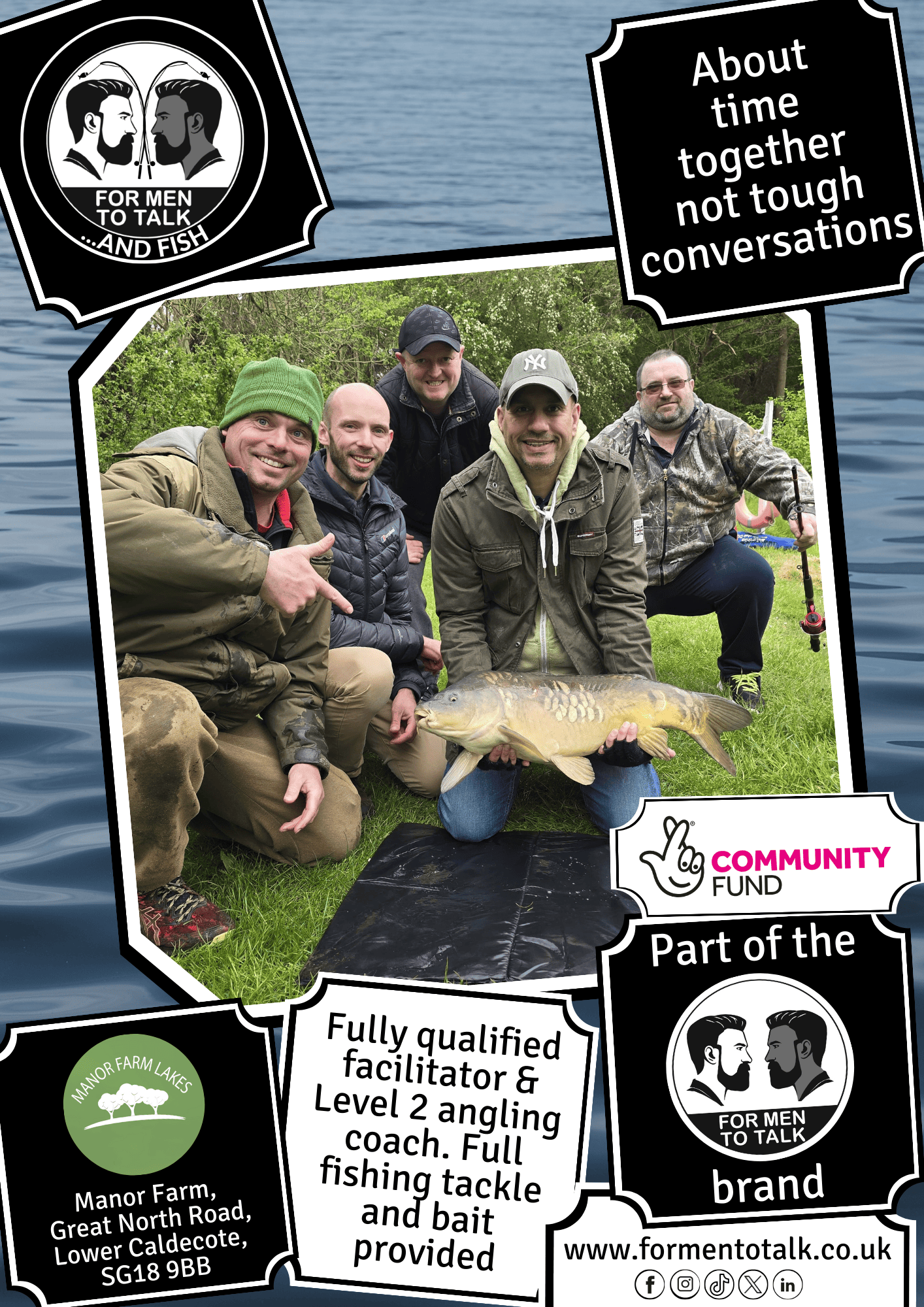 The For Men To Talk and Fish events are held at ‘Manor Farm Lakes’ (Postcode: SG18 9BB).