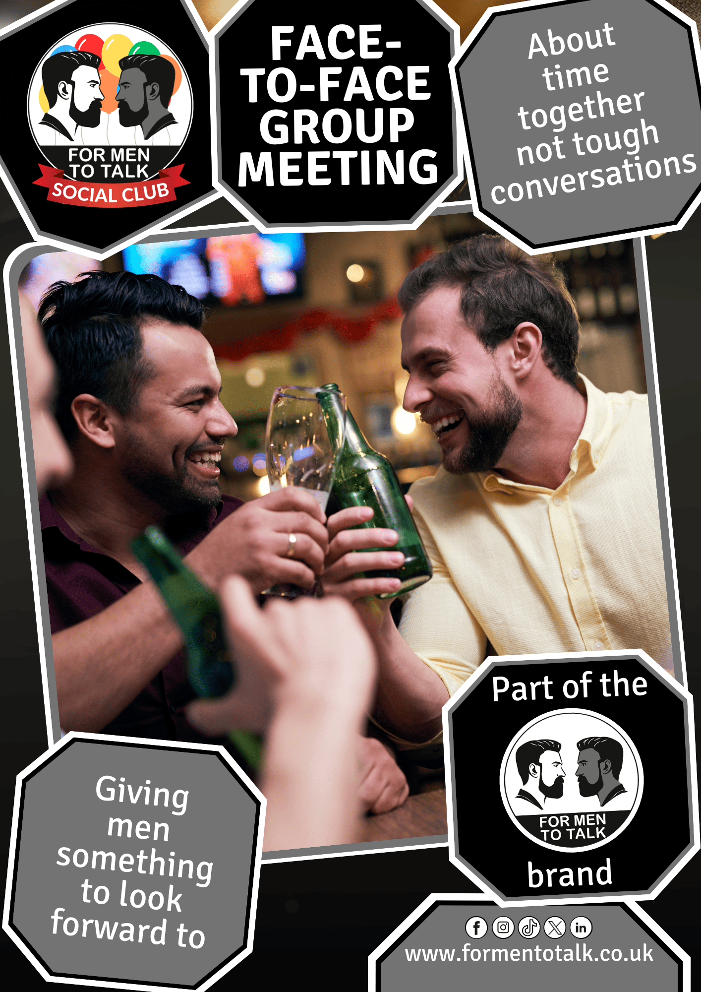 The For Men To Talk Social Club sits within the ‘For Men To Talk’ brand, but it is not a mental health support group. Instead, it is “about time together, not tough conversations.” It is simply about getting out of the house, doing normal things, and enjoying the company of other men.